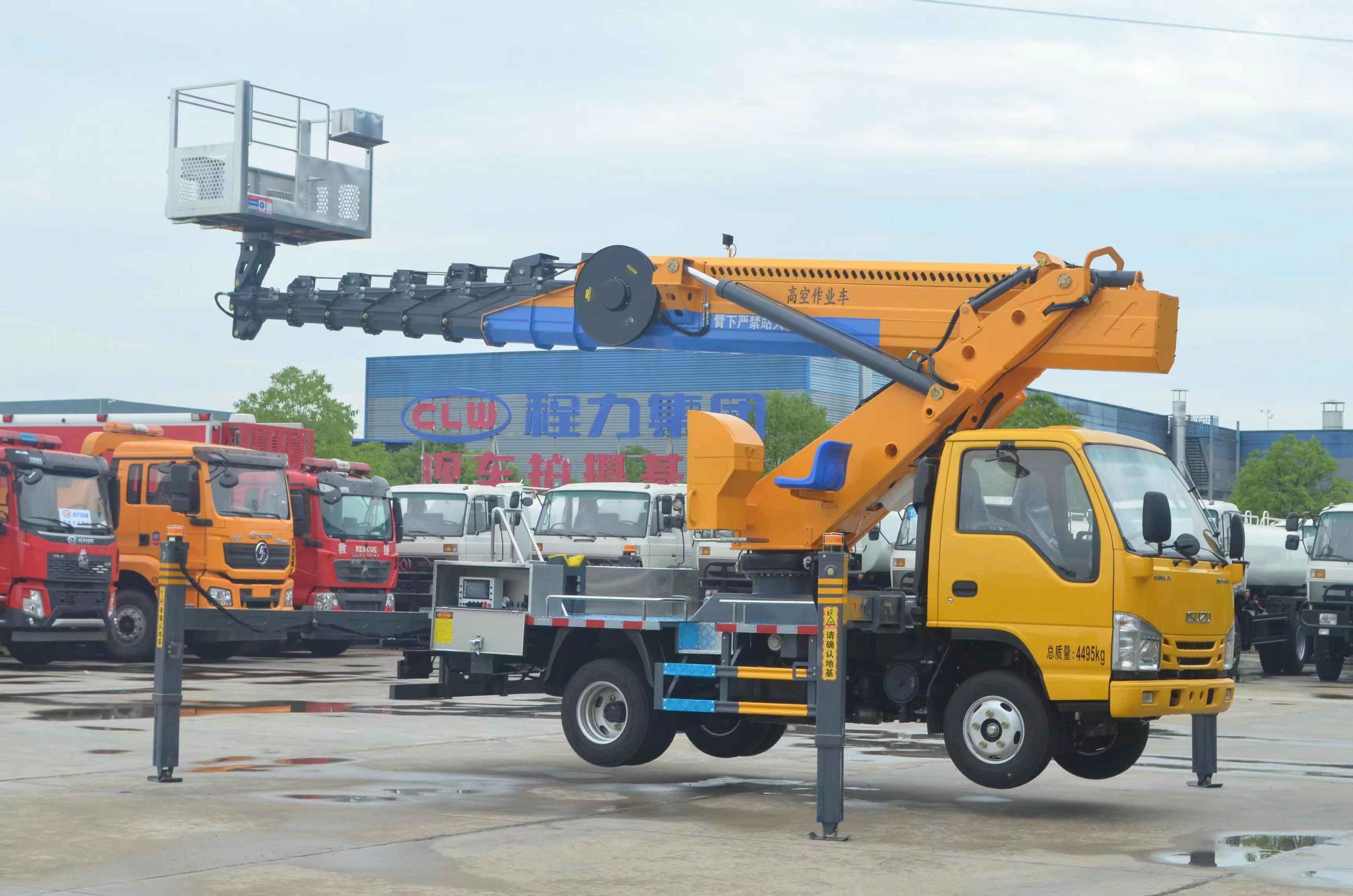 | 上裝配置 | 不銹鋼圍欄及防滑走臺板,高強度不銹鋼工作平臺 (尺寸:1600X700X1000mm),七節十四邊形型工作臂,同步伸縮,回轉裝置 360 度連續回轉,前 V 后 V 型支腿,單獨可調(控制),電控操作,另配有手動應急操作 控制系統,CAN 總線控制系統,配有無線遙控器、實現 無級調速,靜液自動調平; CL5045JGK6ADS 型高空作業車基本功能安全配置:作業車可以實現平臺載荷 200KG,最大作業高度 33 米,最大作業幅度 15 米。 上下車自動互鎖裝置,用于上下車互鎖,防止誤操作發生危險,手動應急泵,當發動機及主泵發生故障時,可通過應急系統將工作人員送回到地面及整車收回至行車狀態,工作平臺緊急停止 裝置,緊急動限制工作幅度,當工作幅度達到規定值時,自動限制危險方向工作;當出現支腿支地不實時(軟腿),舉升臂架將限制危險方向工作。(選配) 夜間安全警示裝置,在車輛上有工程頻閃燈,LED 照明燈發動機點火熄火,控制器可對發動機進行點火,熄火控制;被限制工作時,可通過“強制”功能拓展工作; | ||